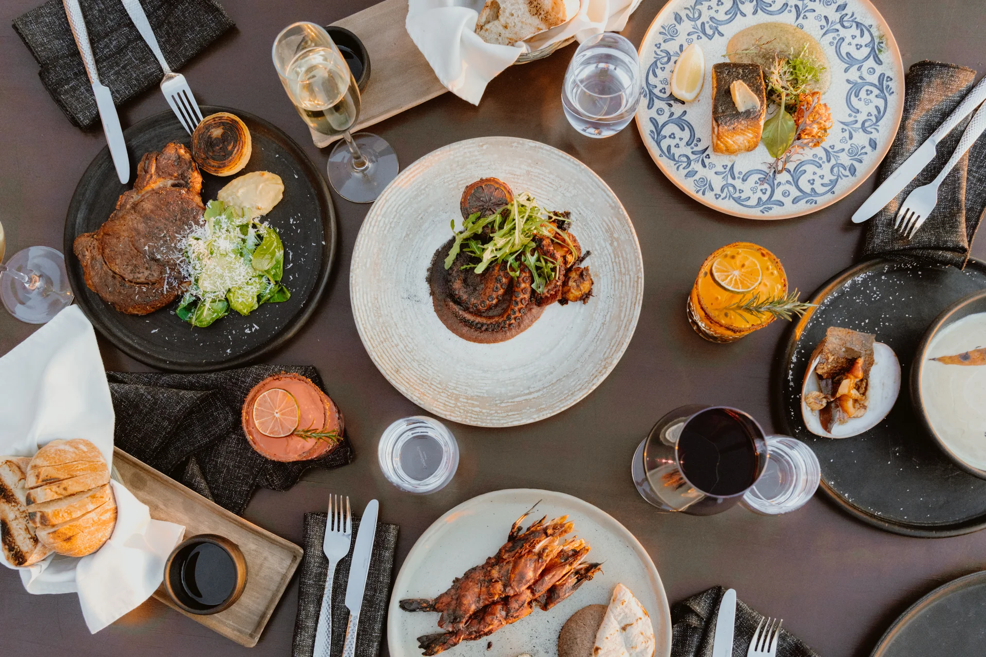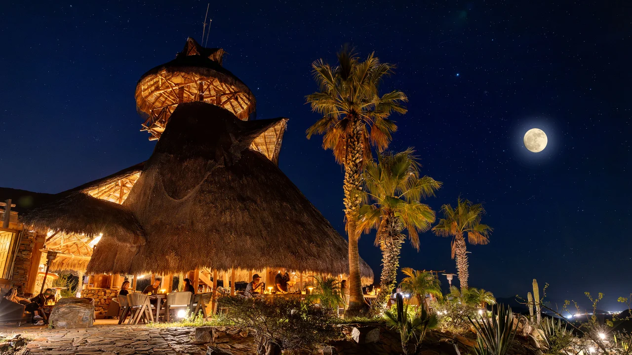 La velada reúne cocina, paisaje y atmósfera en uno de los escenarios más memorables de Todos Santos. La vista al Pacífico acompaña la cena, la luz de la noche transforma el espacio y, en algunas fechas, la música en vivo suma una capa más al ritmo de la velada.
